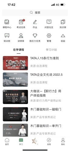 “员工也是服务对象”。是在TATA木门眼里,服务对象不只是消费者、用户,还包括员工。因此,平台承担了知识沉淀、人才培养、战略及文化贯彻落地等功能,是TATA木门战术中最重要的一环。