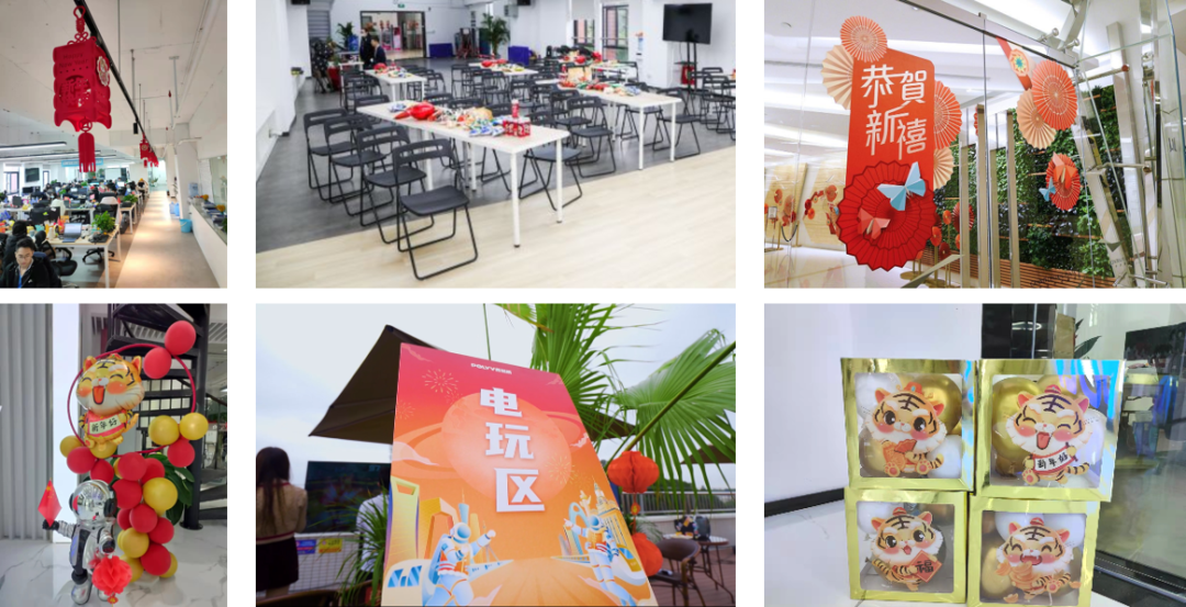 例如,企业可以在办公室区域进行主题装饰——挂灯笼、贴窗花、虎年定制公仔等,营造新年气息;也可设置游戏互动区域,如歌舞区、占卜区、留影区、电玩区、任务区、兑奖区等,让每一位同学都能找到属于自己的专属“天地”,将年会氛围推向高潮。