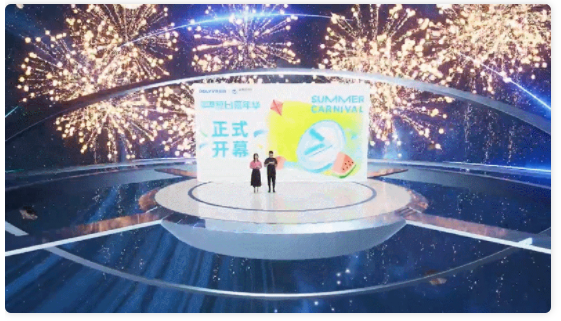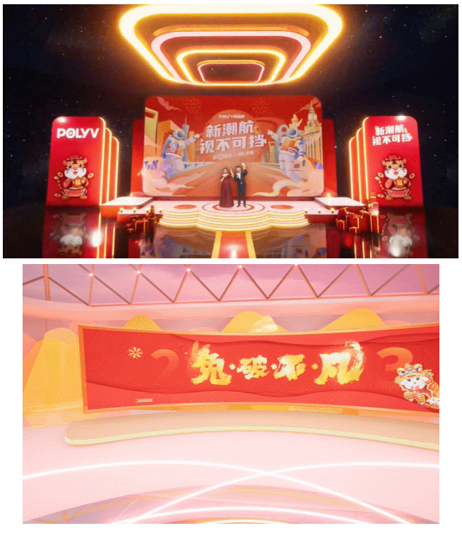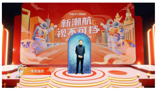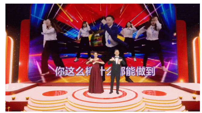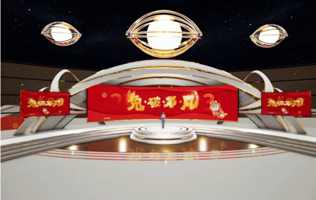 在年会直播中,企业可通过绿幕抠像实现不同的虚拟舞台效果,打造与年会主题、公司品牌强相关的直播场景,让员工能够沉浸式参与到年会中。