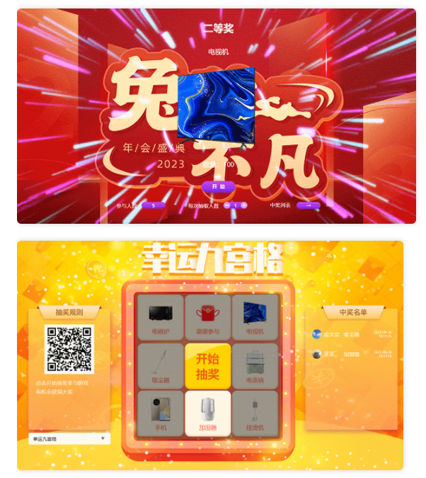 跳出简单枯燥的名字抽奖动画,从奖品展示,到奖项跳动,再到欧皇揭晓,借助线上抽奖的形式,可以极大地激活员工期待值。
