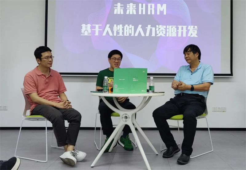 对话嘉宾:福州大学原管理学院副院长强瑞博士(右)、四三九九人力资源总监谢志勇(左)、职行力创始人兼CEO林华荣(中)。