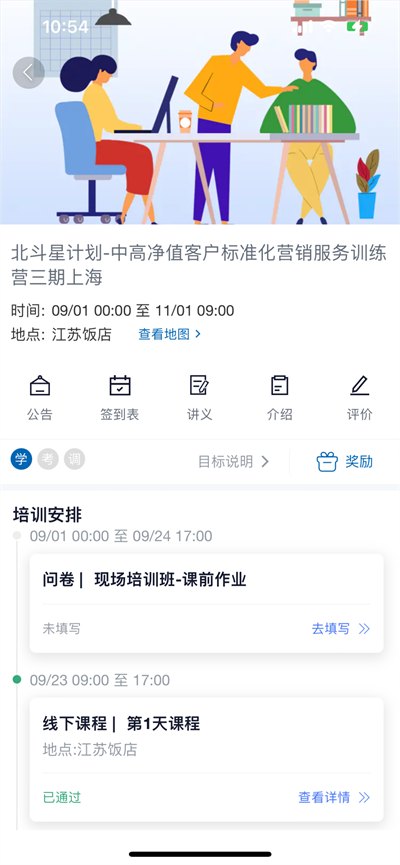 为实现“乐学”场域,东北证券建立了线上移动大学“东证商学苑”。该APP成为了呈现学习资源、承载学习活动和员工社交化学习交流的载体,混合应用了瞩目直播、腾讯会议、云课堂、办公oa、企业微信号等数字化学习辅助系统,迭代引入了标准化的在线技术工具,如微课开发工具、简课制作工具、直播工具等。