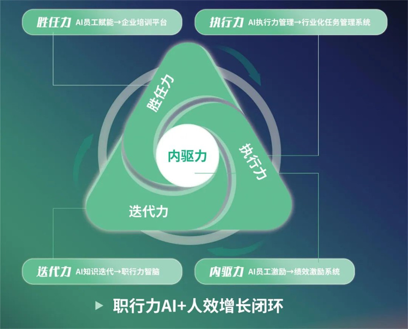 为提升员工ROI,职行力可基于业务场景进行员工赋能、业务赋能,实现员工快速胜任;并以门店巡检、精益生产、陈列管理等行业化赋能软件,保障员工在能力胜任之后的业务不折不扣执行;最后基于游戏化激励体系,激发员工内驱力和积极性。胜任力→执行力→迭代力→内驱力的人效运营闭环,在融合了AI能力之后,可以帮助企业实现更轻松、有效的运营。